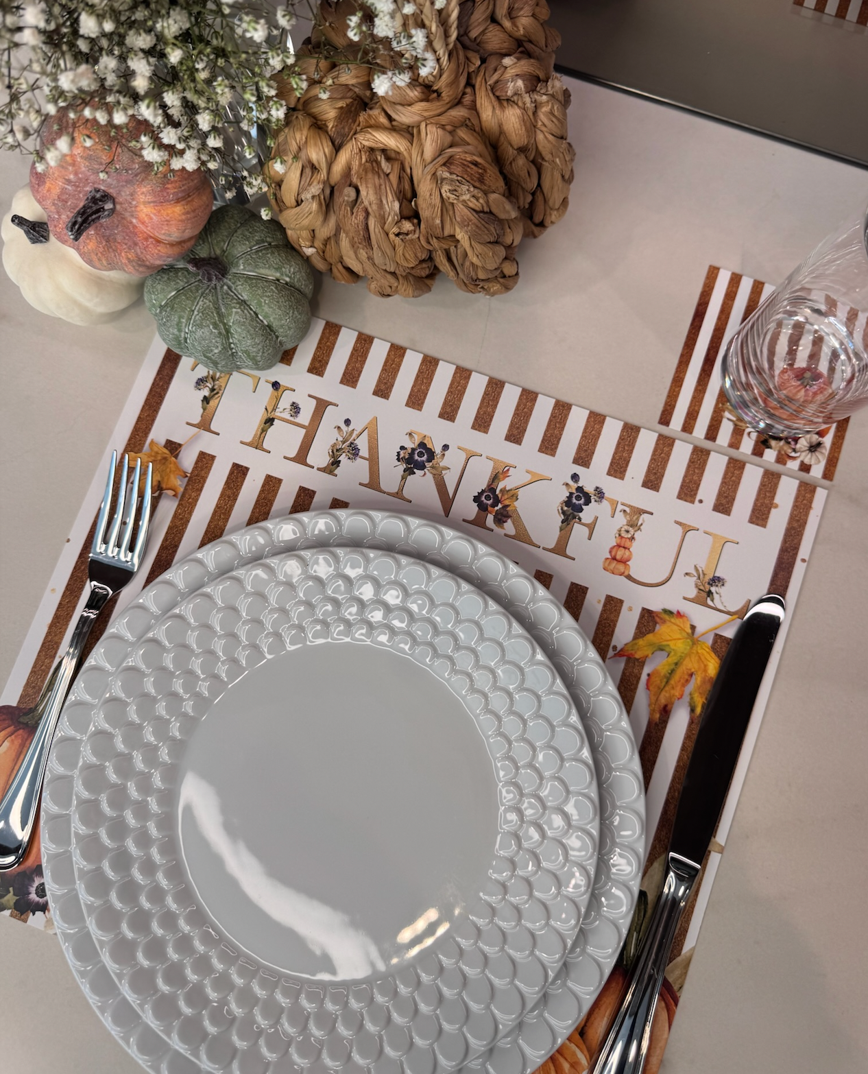 Perfect for Thanksgiving dinners, autumn celebrations, or any table that calls for a touch of seasonal warmth and gratitude.