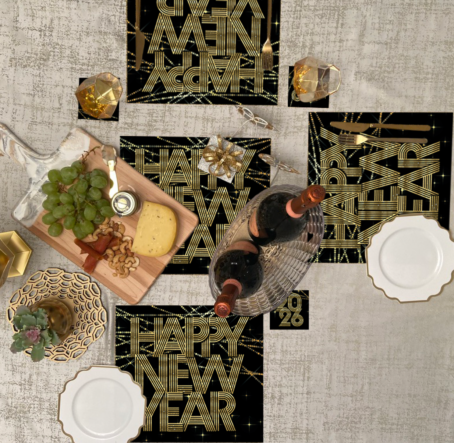 Step into the New Year with elegance and flair with our New Year's Celebration paper placemats – the perfect touch to elevate your table setting for a night of festivities. Designed for both style and practicality, these placemats promise a beautiful, steady, and easy-to-maintain dining experience as you bid farewell to the old and welcome the new.